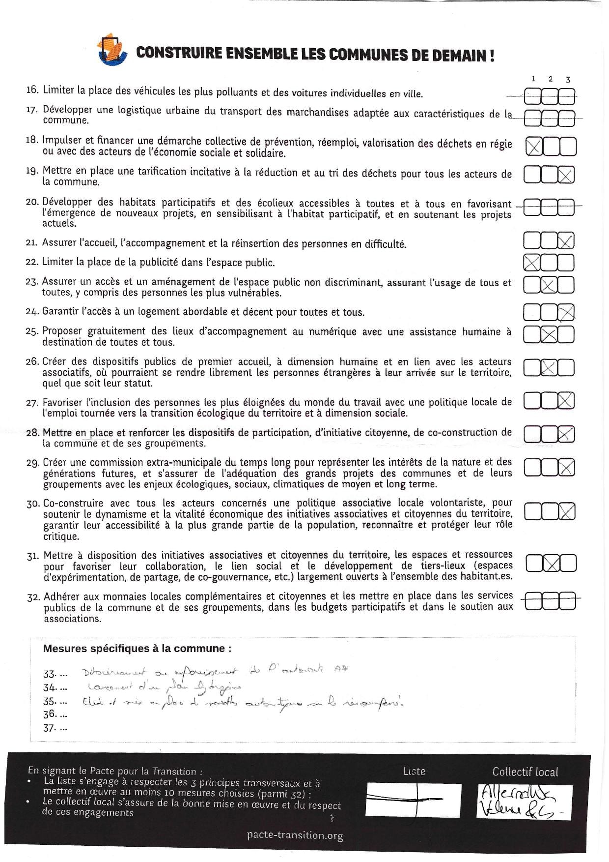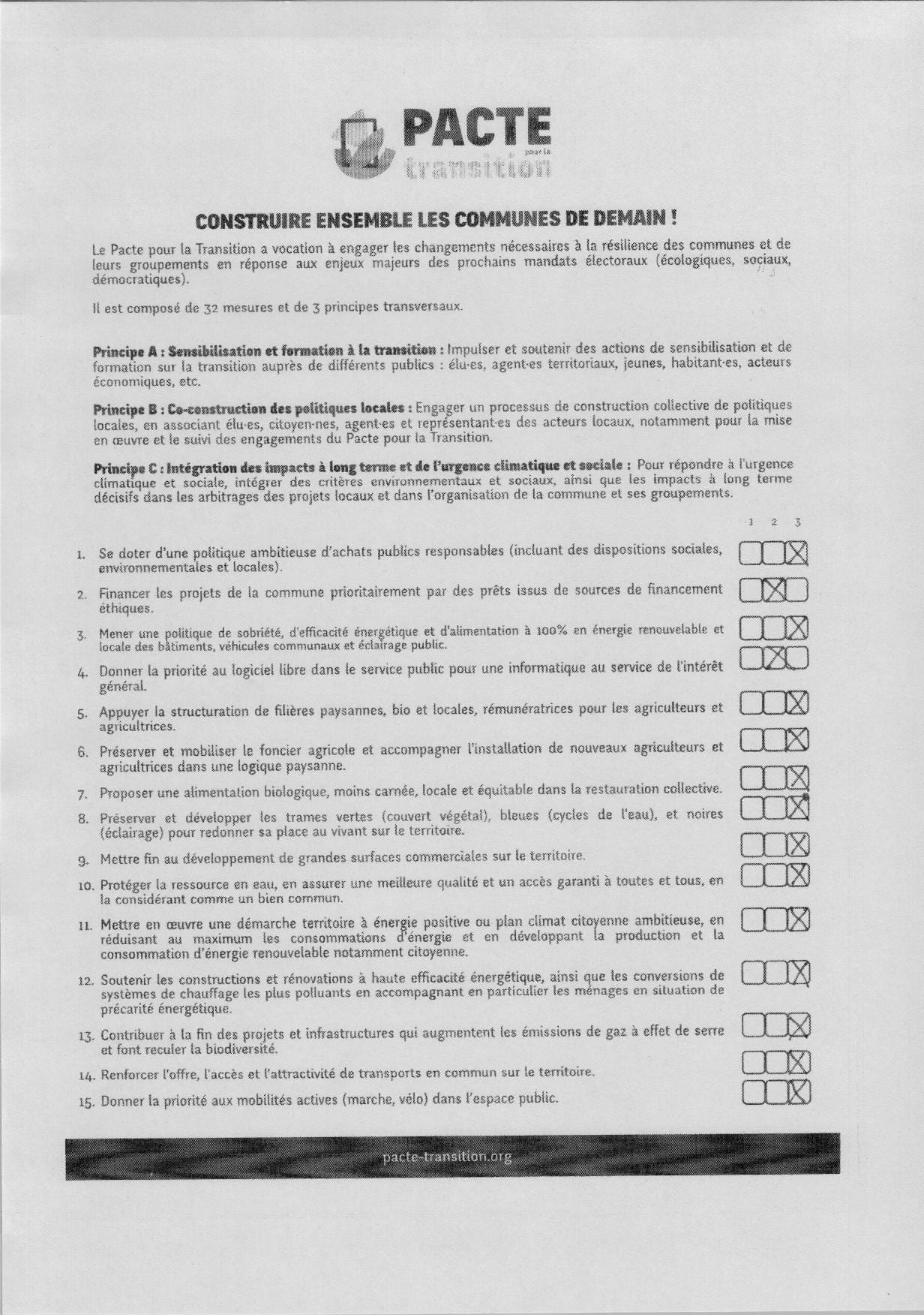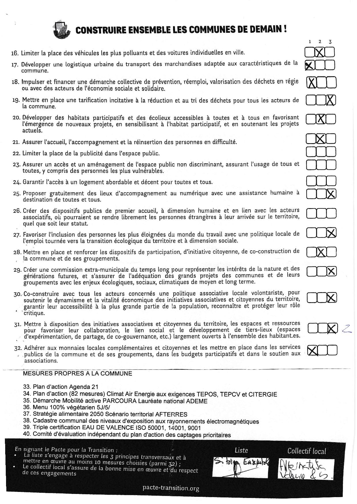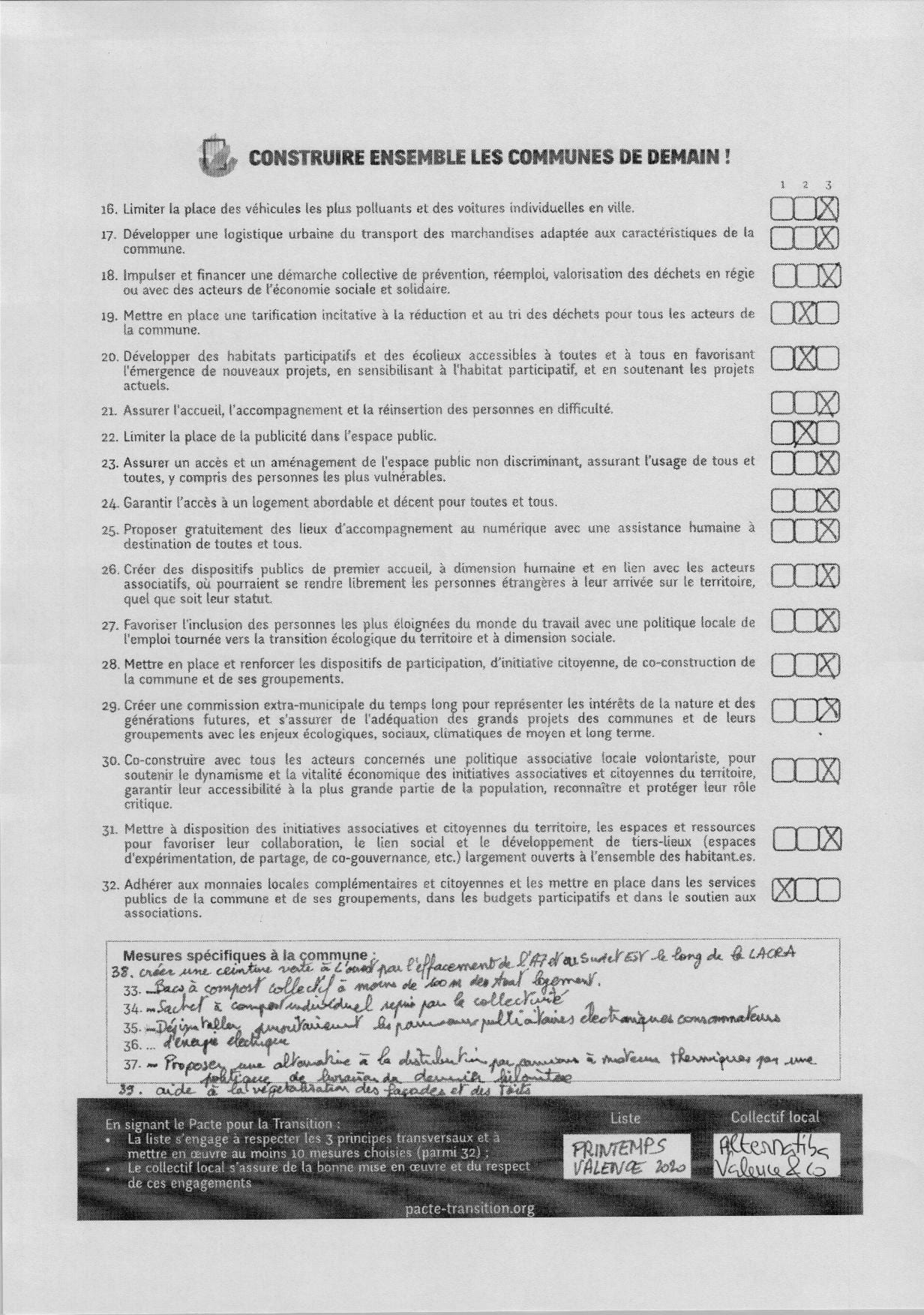 News ! La liste Printemps Valence 2020 s’engage en signant le Pacte pour la Transition. Nous venons de recevoir leur document signé.